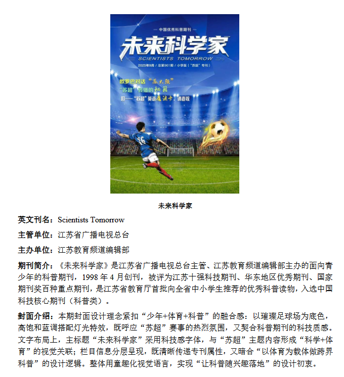 为了促进江苏省科技期刊高质量发展,彰显期刊的优秀内容和设计水平,增强期刊的文化软实力,并激励编辑部将封面打造为传播科技成果的“视觉名片”,江苏省科技期刊学会开展了“首届江苏省科技期刊最美封面遴选”活动。本次活动共收到 67 份参选封面,经组织专家评审,评选出 30 份最美封面,现将入选封面名单公示如下: